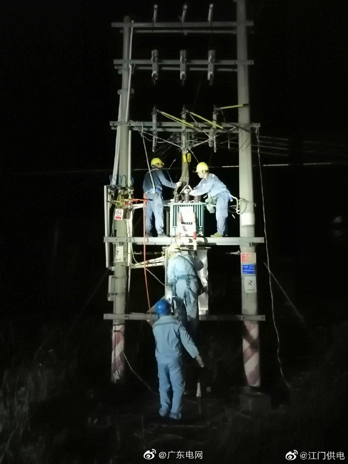 南方電網(wǎng)廣東江門臺(tái)山供電局下川供電所運(yùn)維人員開展緊急搶修