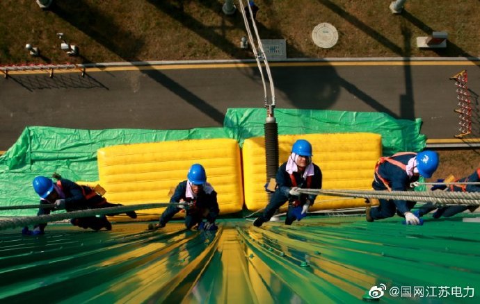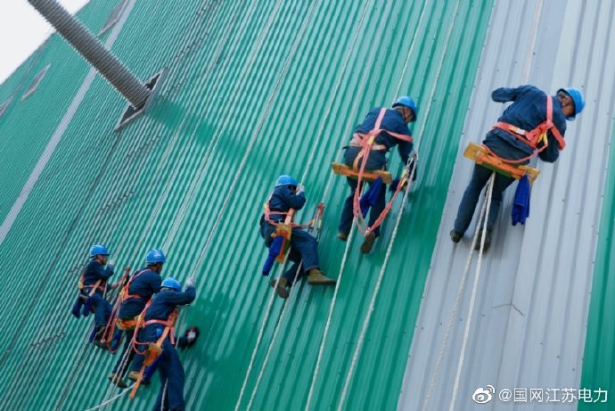 6月5日,國網(wǎng)江蘇檢修公司所轄正負800千伏淮安換流站內(nèi),來自于中能建設(shè)工程集團的工作負責(zé)人師彥超帶著20名員工,在30多米的高空,進行換流閥廳室外墻清掃工作。