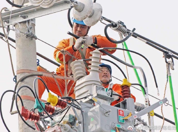 【開斷裝開關(guān) 提高供電可靠性】11月3日,國網(wǎng)東臺市供電公司電力施工人員在溱東鎮(zhèn)周黃村改造10千伏溱湖線,在109號桿導(dǎo)線開斷 ,安裝智能開關(guān),提高溱湖線供電可靠性。 ????