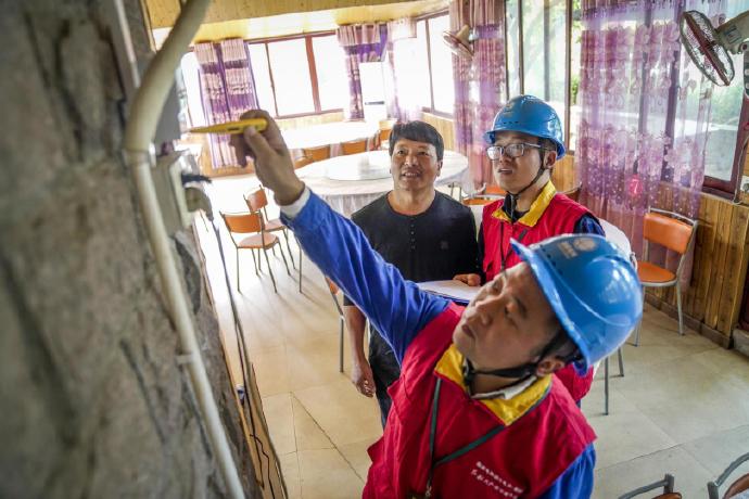 11月6日,國(guó)網(wǎng)杭州市富陽(yáng)區(qū)供電公司紅船共產(chǎn)黨員服務(wù)隊(duì)登上富陽(yáng)新沙島,為島上療休養(yǎng)民宿群進(jìn)行電力整改。依托富春江及獨(dú)具江南特色的田園風(fēng)光,“浮”在富春碧水上的新沙島借助農(nóng)網(wǎng)改造建設(shè)帶來的電力動(dòng)能發(fā)展鄉(xiāng)村游,家家戶戶端上了“生態(tài)旅游”的飯碗,過上了新生活。