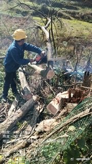 10千伏法高線新澤村火巖上臺(tái)區(qū)進(jìn)行低壓線路砍青掃障工作