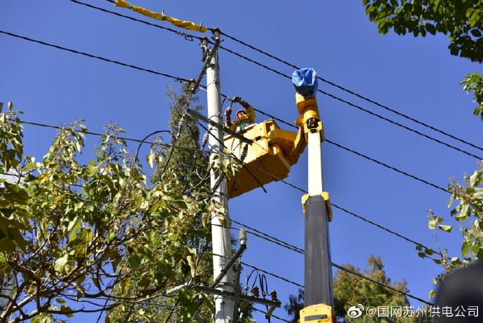 【線路“手拉手” 用電更無(wú)憂】11月19日,國(guó)網(wǎng)昆山市供電公司帶電作業(yè)班員工在淀山湖10千伏永南線4號(hào)桿開(kāi)展搭接分支引線工作,有效提高供電可靠性,確保線路設(shè)備穩(wěn)定運(yùn)行和周邊居民正常用電?。