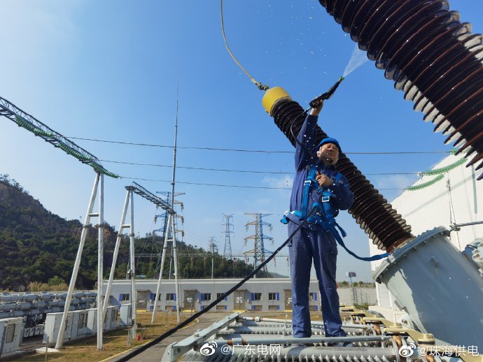 【日落余暉下,冬日里最亮麗的“南網(wǎng)藍(lán)”】冬季氣候干燥降雨少,為保證設(shè)備絕緣性能,防止發(fā)生污閃跳閘事件。近日,南方電網(wǎng)廣東珠海供電局變電管理所檢修一班開(kāi)啟“逢停必清洗”防污閃工作,對(duì)重要站點(diǎn)及開(kāi)展清潔工作,及時(shí)清除堆積在設(shè)備表面的污染物,杜絕污閃導(dǎo)致設(shè)備跳閘事件。同時(shí),加強(qiáng)對(duì)變電站線路防污閃特巡,消除安全隱患。確保設(shè)備正常穩(wěn)定運(yùn)行,全力保障年底供電可靠。