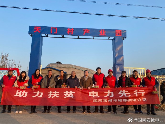 12月4日,在安徽宿州市宿州市埇橋區(qū)大店鎮(zhèn)天門村特色農(nóng)業(yè)扶貧產(chǎn)業(yè)園,國網(wǎng)宿州市城郊供電公司黨員服務(wù)隊正在幫助進(jìn)行五彩圣女果的采摘和銷售,幫助其檢查線路。