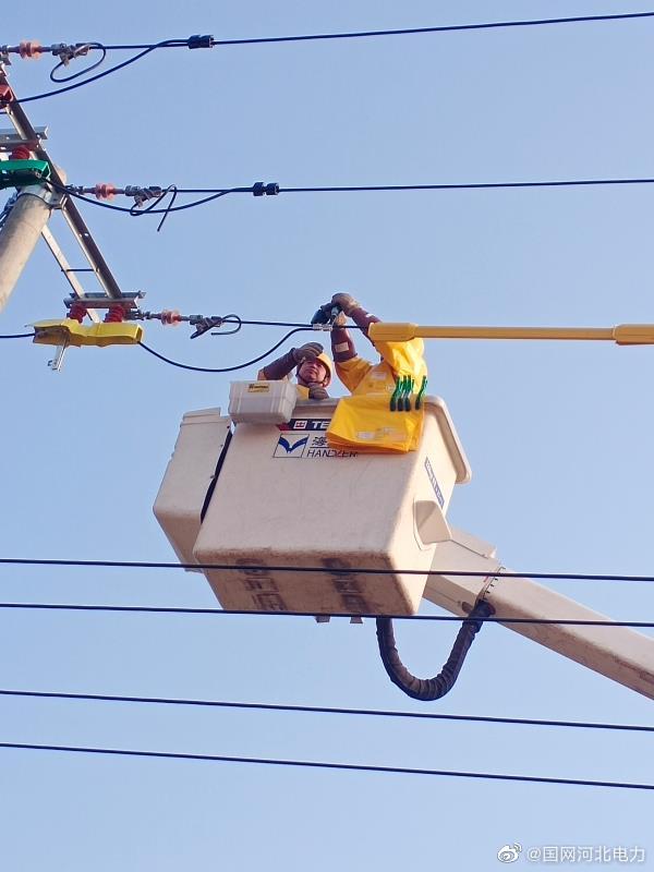 護(hù)航“煤改電”,保暖保供不停電。12月22日,國(guó)網(wǎng)新樂市供電公司帶電作業(yè)班對(duì)10千伏592西田線西田村內(nèi)分支07號(hào)桿進(jìn)行帶電綁扎絕緣子,有效提高線路供電可靠性,為迎峰度冬期間電網(wǎng)安全穩(wěn)定運(yùn)行奠定基礎(chǔ)。(劉志勇 谷賽特) ????