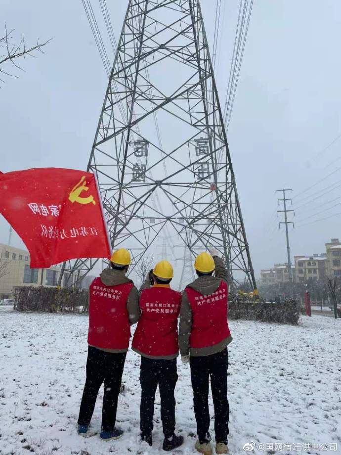 【迎戰(zhàn)風(fēng)雪保供電】12月29日,國(guó)網(wǎng)宿遷沭陽(yáng)縣供電公司輸變電運(yùn)檢中心組織運(yùn)檢班黨員突擊隊(duì)冒著大雪重點(diǎn)對(duì)110-500千伏線(xiàn)路巡視,危險(xiǎn)源隱患排查管控,全力保障輸電線(xiàn)路通道安全。