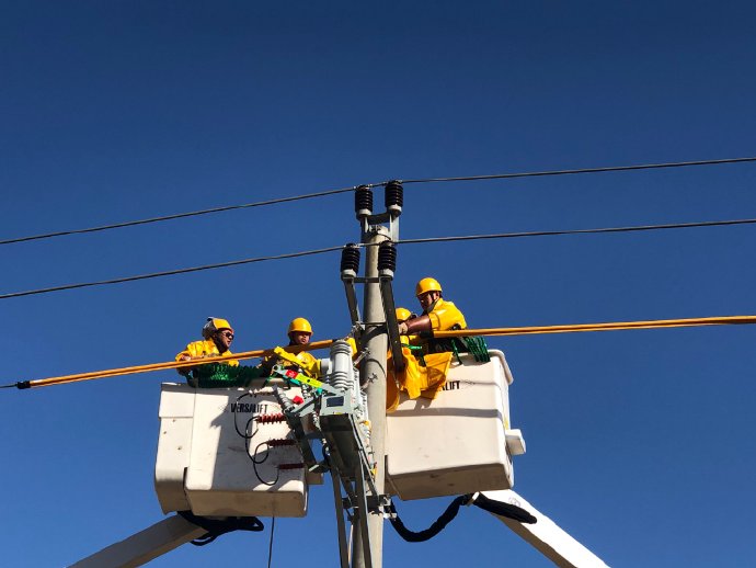 【優(yōu)化農(nóng)村網(wǎng)架結(jié)構(gòu)】 1月15日,臺(tái)州市三門縣沙柳街道的華山村附近田野上,國網(wǎng)三門縣供電公司員工開展不停電加裝智能開關(guān)工作,增強(qiáng)補(bǔ)缺沙柳街道區(qū)塊主線路,優(yōu)化供電區(qū)域的網(wǎng)架結(jié)構(gòu)。