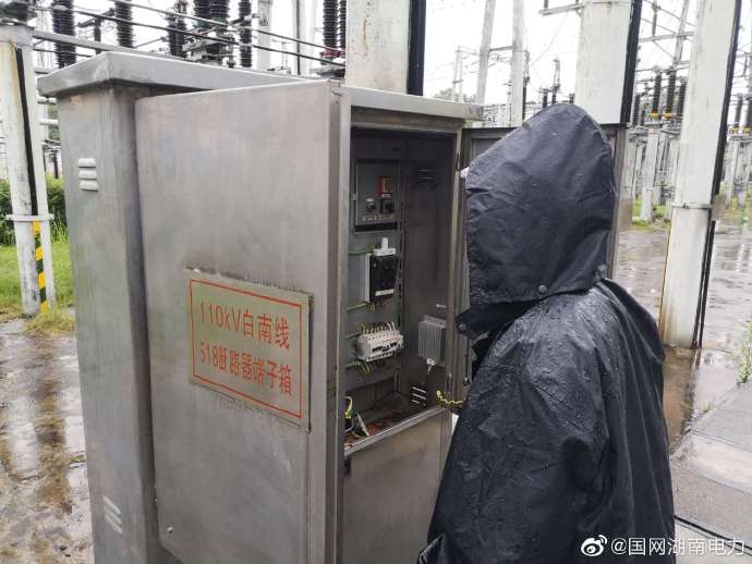 6月10日16時,株洲地區(qū)突降暴雨,國網(wǎng)株洲供電公司變電運維四班汪鶯、覃仕樾迅速趕到220kV白馬垅變電站進行防汛特巡,重點對變電站電纜溝、排水通道、室外端子箱進行全面檢查,確保變電設備安全可靠運行。
