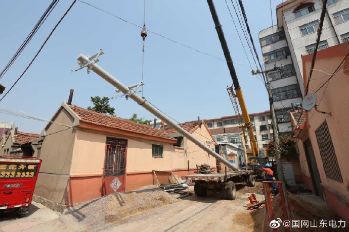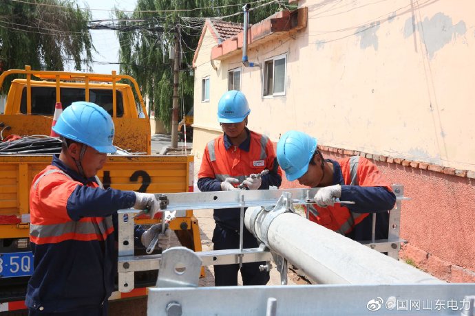 6月13日,國網(wǎng)膠州市供電公司員工來到大同新村對10千伏云曉線進(jìn)行臺區(qū)線路改造。拆除了原來部分10米0.4千伏電桿,更換為同桿架設(shè)的15米電桿,并為架設(shè)完成大同東3號臺配變供電。在高溫來臨之前,及時為膠州老城區(qū)百姓提供堅強電力保障。