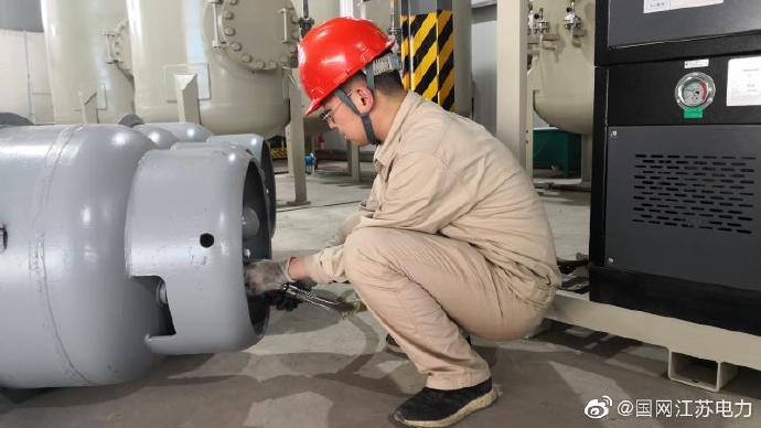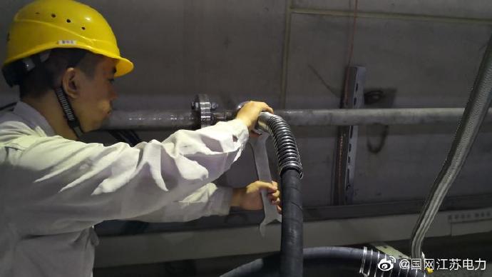 6月15日,蘇通GIL綜合管廊工程氣務(wù)工作正式啟動。江蘇省送變電有限公司組織施工人員,采用集中供氣站充氣方案對泰吳1線南、北段和泰吳2線南、北段的四個工作面同時開展氣務(wù)工作。利用地面集中供氣站和敷設(shè)于管廊內(nèi)的5.8公里輸氣管道進行充氣具有傳統(tǒng)充氣方式無可比擬的優(yōu)點:無需氣瓶運輸、出氣質(zhì)量高、充注時間短、降低安全風(fēng)險、減少人力成本等,是管廊工程建設(shè)的又一“神兵利器”。