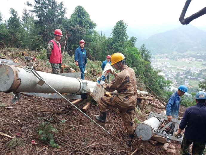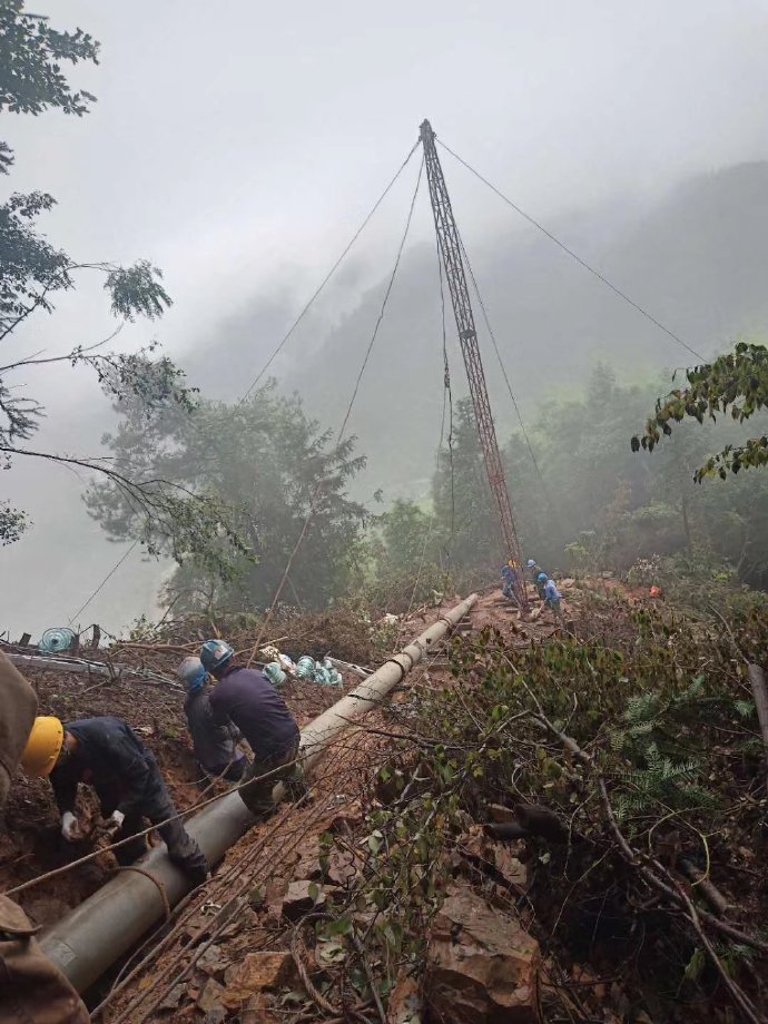 6月18日,在婁底市新化爐35kV線路工程施工現(xiàn)場,來自婁底供電公司星源電建集團(tuán)輸變電分公司的十多名施工人員在深山里有序開展4號電桿立桿工作,力保該工程按期完成。