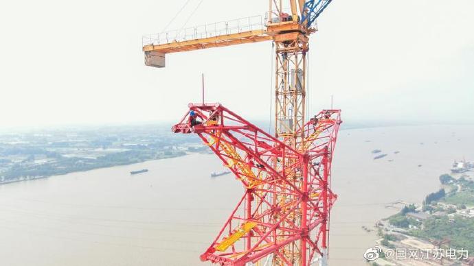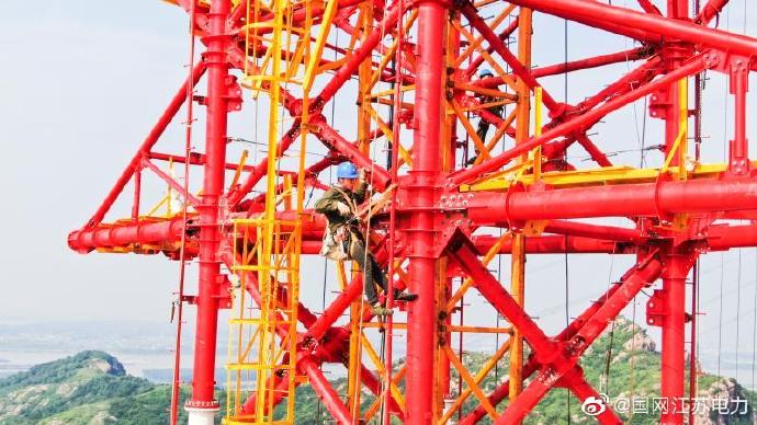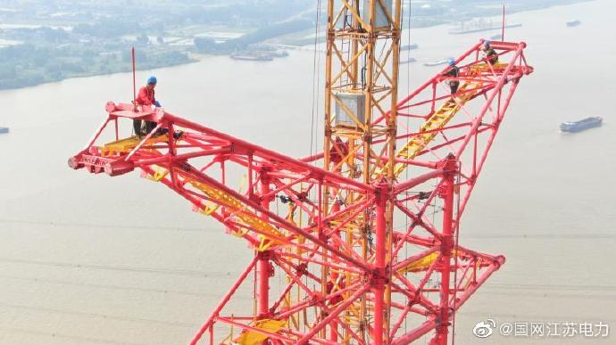 6月24日,在鎮(zhèn)江五峰山220千伏跨江升高改造工程南跨越塔舊塔爆破原址,江蘇省送變電有限公司施工人員正在162米的高空組裝新鐵塔。隨著最后一吊地線頂架完成組裝,標志著南跨越塔全部組裝完成。新建跨江輸電線路建設后將滿足現今長江干線5萬噸級海輪遠航凈高50米的要求,輸電能力也較原來提升3倍以上。