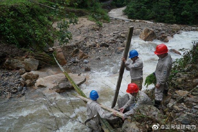 6月22日,因受強降雨導致福建省邵武市張厝鄉(xiāng)祝嶺村路段爆發(fā)山洪,致使該路段道路及供電被中斷。接到消息后邵武市供電公司的工作人員第一時間組織4部車、30余人的搶修隊伍前往受災路段,由于滑坡道路阻斷,搶修人員只能徒步前往搶修地點,為了方便人員和設(shè)備通過,他們還架起一座簡易的橋。面對暴雨的突擊,供電蜀黍早已提前部署好,風雨再大,有他們在前方護航。