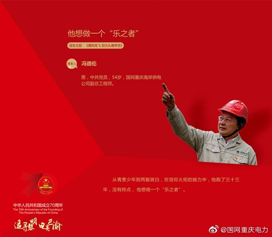 54歲的馮德倫是網(wǎng)重慶南岸供電公司副總工程師,不知不覺(jué)中已經(jīng)在電力戰(zhàn)線工作了34年,干過(guò)市、區(qū)兩級(jí)電網(wǎng)調(diào)度、線路、營(yíng)銷(xiāo)等多個(gè)部門(mén)的一線和管理工作,從滿頭青絲到花白頭發(fā),從單打獨(dú)斗到帶領(lǐng)團(tuán)隊(duì),他收獲良多,感受良多,他常對(duì)伙伴們說(shuō),都說(shuō)自己是“國(guó)家電網(wǎng)人”,但可知道這其中“國(guó)家”二字的份量?