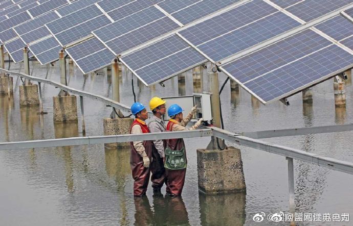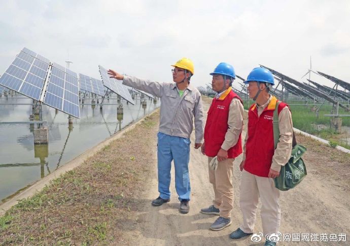 7月3日,國網(wǎng)東臺市供電公司弶港供電所“金海星”共產(chǎn)黨員服務(wù)隊員到東臺沿海經(jīng)濟(jì)區(qū)中節(jié)能“風(fēng)光漁”光伏電站,與電站維護(hù)人員一起巡檢光伏多晶硅板及匯流控制柜,保障夏季安全發(fā)電。 ????