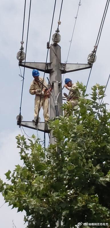 【冒高溫?fù)屝?0千伏電纜引下線燒壞故障】7月8日,國網(wǎng)徐州銅山區(qū)供電公司運(yùn)維檢修部配電班人員冒高溫?fù)屝?0千伏南七124線33號(hào)桿電纜引下線燒壞故障,保障康平小區(qū)公變用電。