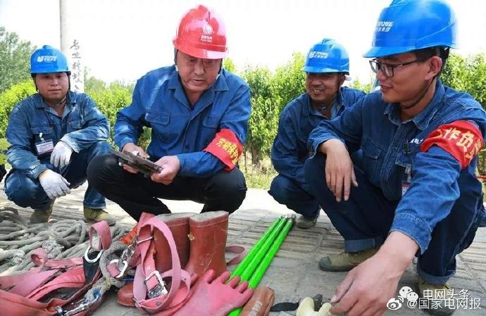 2.7月9日,河南安陽湯陰縣供電公司員工鄭學(xué)忠在伏道鎮(zhèn)后攸曇村農(nóng)網(wǎng)改造現(xiàn)場檢查一線班組的安全工具器具和個人防護用品。