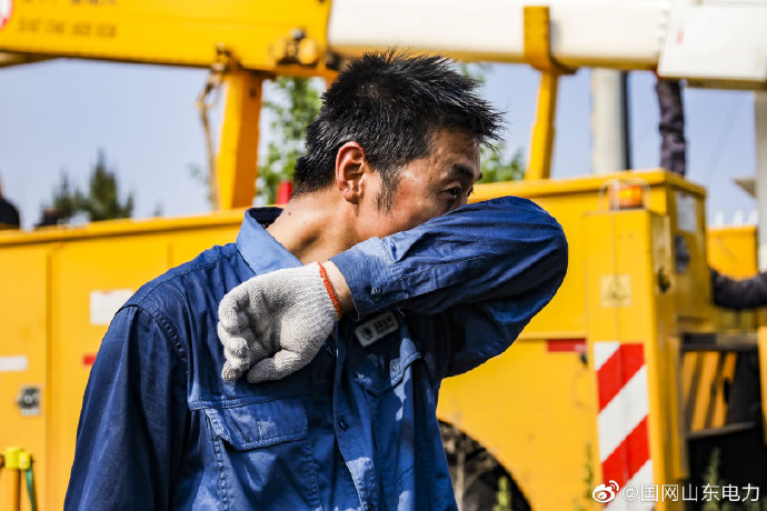 【高溫天 帶電作業(yè)太陽之下“洗個澡”】7月10日,國網(wǎng)榮成市供電公司帶電作業(yè)班頂33攝氏度高溫,完成10千伏興裕線39號桿帶電接火任務(wù)后,兩名洗過“汗蒸”的作業(yè)人員邊擦拭不止的汗水邊笑著說:“本以為前面的兩場活汗都流盡了,沒想到,又‘洗了個澡’”。當天,還有“兩場澡”等著他們。 ????