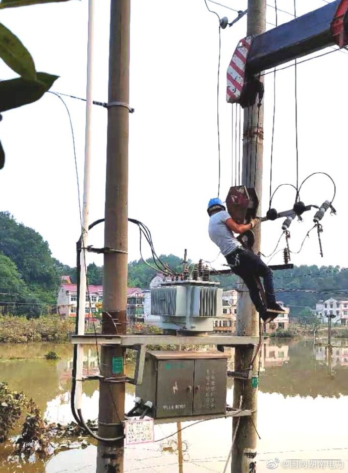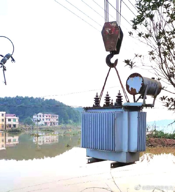 連日的暴雨造成河水水位上漲,沿河邊地勢低的配變臺區(qū)被兇猛的洪水淹沒了。釀溪供電所配電班職工徹夜未眠地密切關(guān)注水位上漲情況,等洪水稍退,立即對受損變壓器進行更換,確保廣大居民第一時間用上安全電源。
