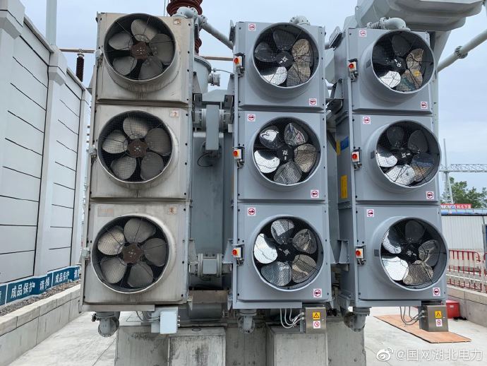【為老主變換上新風(fēng)扇】7月16日上午,國網(wǎng)湖北省恩施東輸變電工程現(xiàn)場,主變設(shè)備廠家對樊城已運(yùn)行長達(dá)16年之久的舊#1主變進(jìn)行風(fēng)扇更換。通過更換兩組主變冷卻器風(fēng)扇,確保在炎炎夏日恩施東變電站投產(chǎn)運(yùn)行時,主變也能吹上清涼風(fēng),過一個清涼夏季!