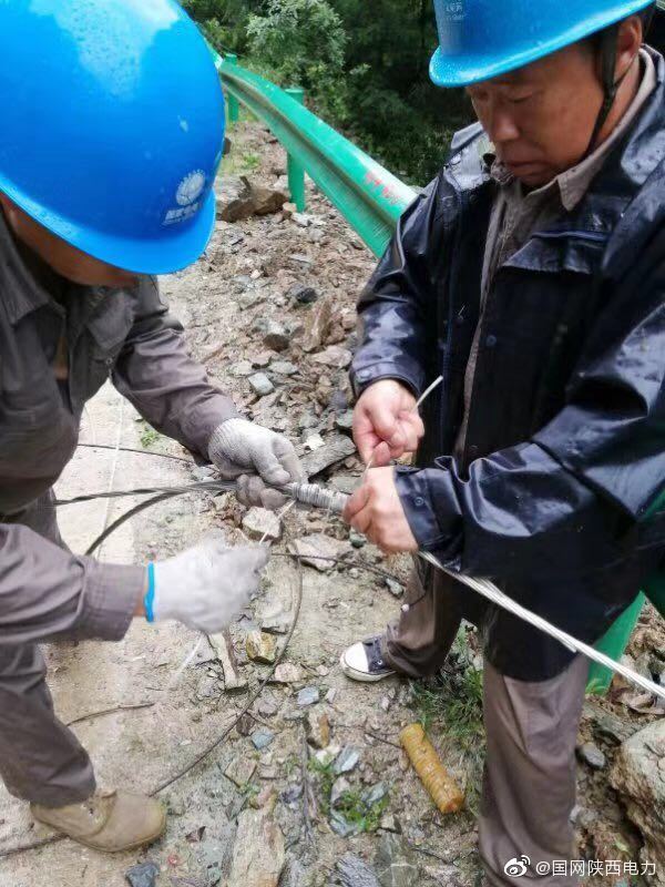 【冒雨搶修保供電】7月17日,阜川變113農(nóng)莊線雙柏支線39號桿至41號桿之間因山體滑坡致使樹木將導線壓斷,部分臺區(qū)斷電,在接到故障報修后,國網(wǎng)勉縣供電公司搶修人員不畏艱難,克服天氣及地勢因素,齊心協(xié)力,冒雨搶修,連接導線,經(jīng)過5小時的奮戰(zhàn)該線路恢復了正常供電,確保了居民正常的生產(chǎn)生活。