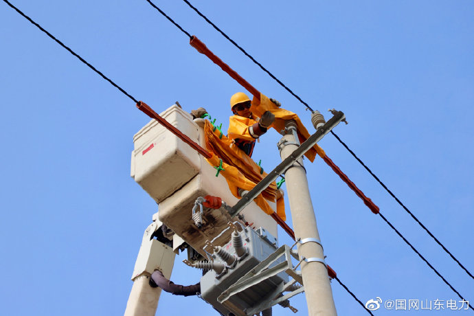【高溫帶電作業(yè) 傳遞夏日清涼】7月24日,國網(wǎng)即墨市供電公司帶電作業(yè)人員對10千伏水泊線9號甲桿進行直線桿改耐張桿并加裝隔離開關工作。當日天氣酷熱,工作人員穿著密閉絕緣服頂著烈日,進行三個小時奮戰(zhàn),順利完成本次工作。
