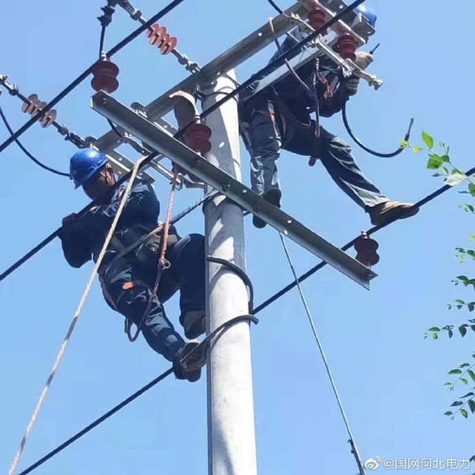 鏖戰(zhàn)酷暑保供電,揮汗如雨送清涼?!?月24日,國(guó)網(wǎng)武強(qiáng)縣供電公司街關(guān)供電所施工人員頂著炎炎夏日進(jìn)行10千伏532線(xiàn)路切改工作。此項(xiàng)工作完成提高了西小章等六個(gè)村的供電可靠性,為打好迎峰度夏這場(chǎng)硬仗奠定了基礎(chǔ)。