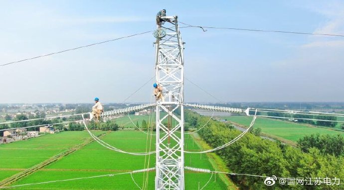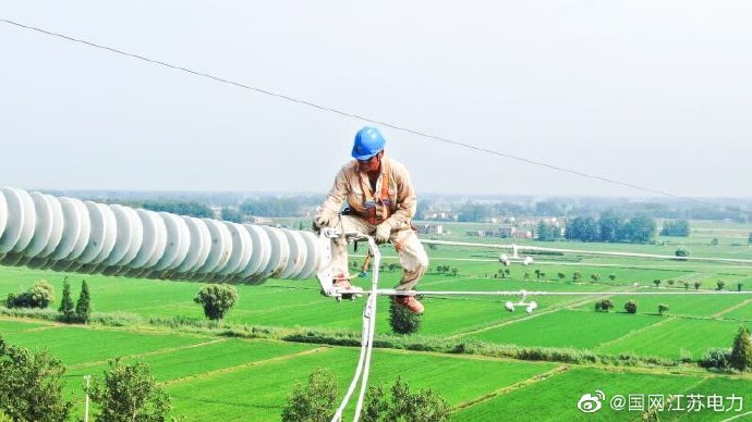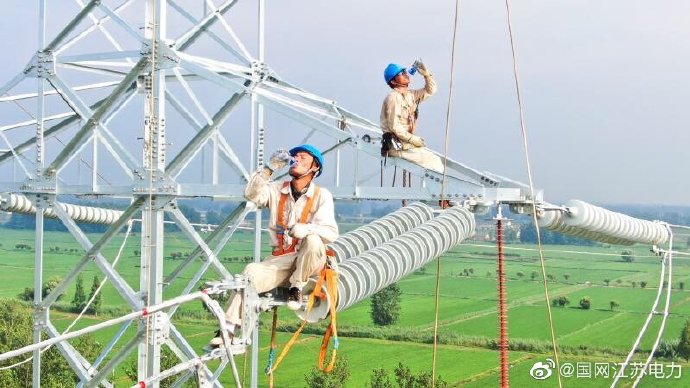 【烈日“烤”驗 電力人揮汗如雨】7月24日,江蘇全省開啟了“燒烤”模式,各個電力工地都仿佛被籠罩在火爐里一樣。在江蘇高郵220千伏秦郵至高郵牽引站線路工程現(xiàn)場,江蘇省送變電有限公司施工人員正在頂著40℃的高溫加緊施工,為電網(wǎng)建設揮灑汗水。該線路是連淮揚鎮(zhèn)高鐵高郵牽引站用電需要的重要配套線路,牽引站又被譽為高鐵牽引供電系統(tǒng)的“心臟”,建成后將保障高鐵列車安全、高速、可靠、穩(wěn)定運行。