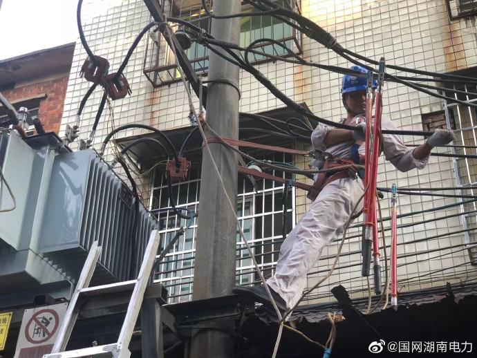 因用電負(fù)荷過大,10KV九南線紅豆市場(chǎng)臺(tái)區(qū)低壓測(cè)B相出線燒斷。國(guó)網(wǎng)南縣供電公司搶修人員在對(duì)該臺(tái)變壓器采取緊急措施后,立即進(jìn)行現(xiàn)場(chǎng)搶修工作,時(shí)間一分一秒過去,天氣悶熱,幾分鐘時(shí)間汗水便浸透了他們的工作服。