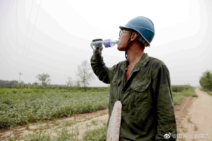 七月流火,正是一年之中最熱的季節(jié)。滾滾熱浪令人窒息,很多人對(duì)出門(mén)都望而卻步。然而,有這樣一群人,他們戰(zhàn)高溫、斗酷暑,頑強(qiáng)地奮戰(zhàn)在電網(wǎng)迎峰度夏第一線(xiàn)。7月28日,10千伏武專(zhuān)523線(xiàn)路武官寨公變3設(shè)備線(xiàn)夾燒斷,國(guó)網(wǎng)故城縣供電公司立即組織人員進(jìn)行搶修,搶修人員冒著高溫攀爬在接近40度的電線(xiàn)桿上,一絲不茍地開(kāi)展搶修作業(yè),任憑滿(mǎn)臉的汗水順著脖子流淌,濕透了衣襟,他們?nèi)活櫜簧喜潦靡幌?。圖為故障全部排除、線(xiàn)路恢復(fù)供電后,從桿上下來(lái)的搶修人員正在補(bǔ)充水分。