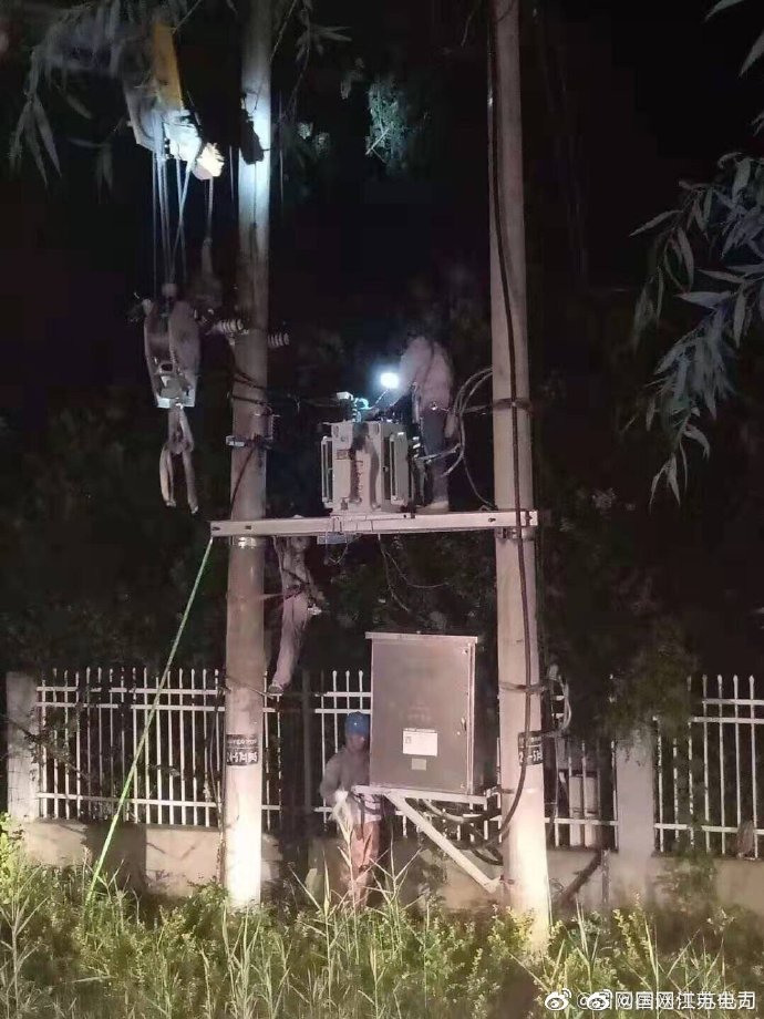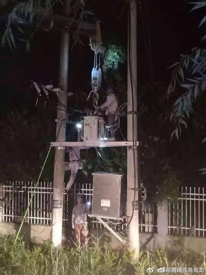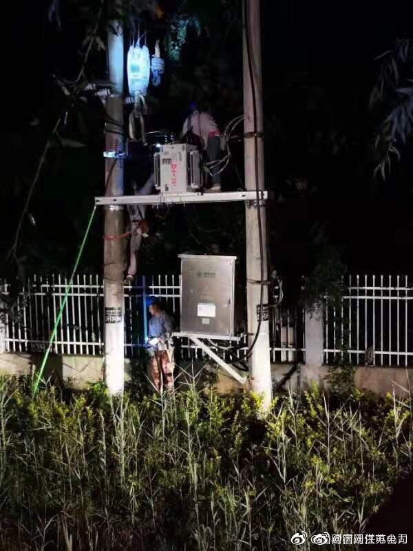 【雷擊毀配變, 夜半搶修忙】7月28日18:20,沭陽(yáng)縣遭遇暴風(fēng)驟雨,造成塘溝鎮(zhèn)胡塘橋村西姜組1臺(tái)200千伏安的配電變壓器被雷擊燒毀,導(dǎo)致110居民失電,國(guó)網(wǎng)宿遷沭陽(yáng)縣供電公司立即組織人員冒著36℃的高溫進(jìn)行搶修,更換配電變壓器,并于23:10更換結(jié)束送電。 ????