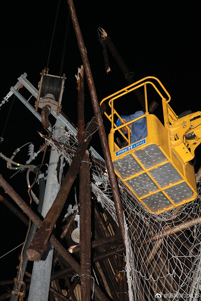 威縣供電公司迅速連夜搶修遭重創(chuàng)的電網(wǎng)桿塔線路