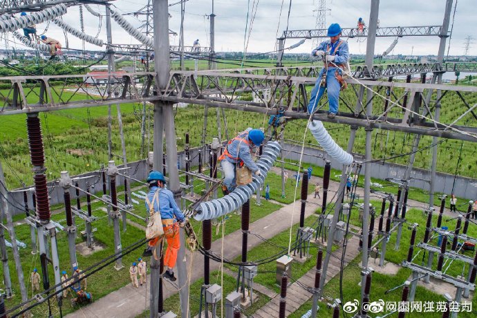 8月4日,泰州供電公司工作人員在220千伏黃橋變電站更換絕緣子串。為確保黃橋古鎮(zhèn)工農(nóng)業(yè)生產(chǎn)可靠用電,8月4日-5日,該公司組織150人分成10個(gè)小組進(jìn)行黃橋大會(huì)戰(zhàn),對(duì)220千伏黃橋變電站全站1號(hào)主變、2號(hào)主變采取零時(shí)至夜里12時(shí)隔日輪停方式進(jìn)行停電檢修升級(jí)改造。 ????