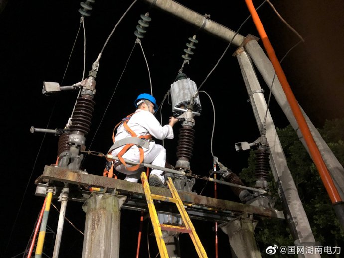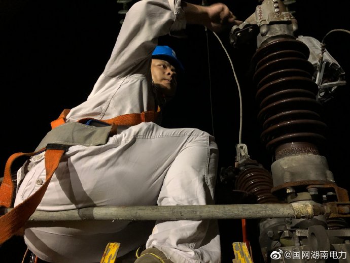 8月3日凌晨,國網(wǎng)湖南省電力有限益陽供電分公司變電檢修檢修公司變電檢修班員工陳思勃正在抓緊時間消除35千伏泥石線4063隔離開關(guān)B相觸頭發(fā)熱缺陷。