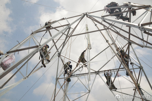 【加快重點(diǎn)線路建設(shè) 助力經(jīng)濟(jì)發(fā)展】8月6日,國(guó)網(wǎng)莒縣供電公司工作人員在莒縣碁山鎮(zhèn)水由村組裝35千伏招賢至安莊輸電線路鐵塔,在烈日的炙烤下,鐵塔變得滾燙,工作人員克服酷暑堅(jiān)持在高空中完成施工作業(yè),為線路早日投運(yùn)奠定基礎(chǔ)。 ????