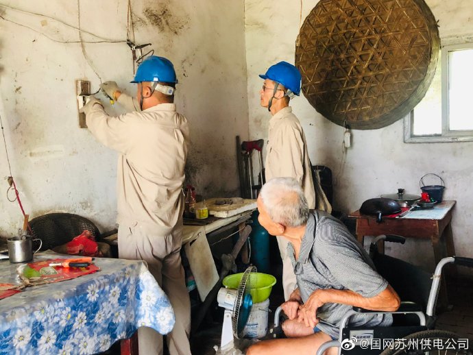 8月7日,國(guó)網(wǎng)常熟市供電公司尚湖供電所臺(tái)區(qū)經(jīng)理在高溫天氣來(lái)到尚湖鎮(zhèn)常興金墅村為麻風(fēng)病老人王全根家里維修電燈開關(guān)和電風(fēng)扇插座,為夏日老人送上一份清涼。