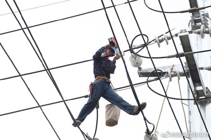 8月8日,國網(wǎng)張家港市供電公司員工在南豐鎮(zhèn)東沙乙線為150號桿更換絕緣導(dǎo)線。該工程為沿江公路南延10千伏線路遷移工程,此次遷改將確保市政建設(shè)改造及時完成。 ????