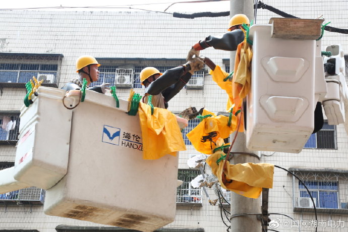 昨日上午11時許,婁星區(qū)供電支公司帶電作業(yè)工作人員正頂著烈日,穿著厚厚的絕緣服在婁底老街10千伏九沿線#095桿上帶負荷更換跌落保險,客戶用電沒有受到任何影響,受到了周邊商戶的一致好評。
