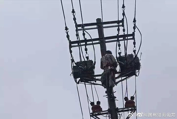 【凌晨迎風(fēng)冒雨登桿快搶修】8月12日4點55分,10千伏富燕線、富工線雙回路38#桿兩臺柱上開關(guān)同時被雷電擊穿導(dǎo)致近4000戶居民家中停電,國網(wǎng)徐州邳州市供電公司緊急調(diào)集應(yīng)急搶修隊伍前往故障點,“急用戶所急”,冒著大雨加快搶修進度,迅速恢復(fù)了線路供電。 ????