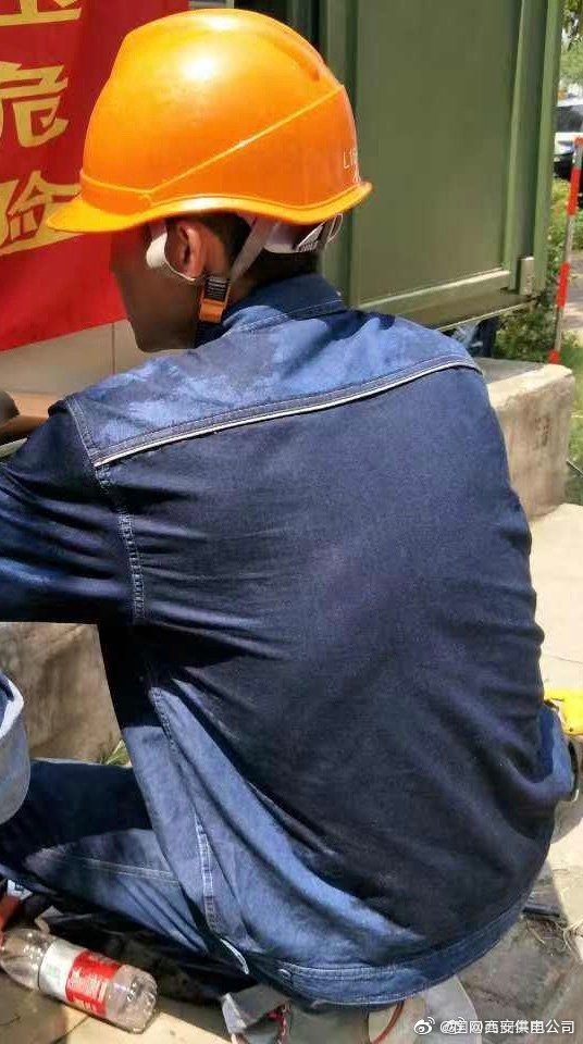 【大寫的心疼】流金鑠石,熱浪洶涌。8月12日,亮麗送變電分公司在浐灞生態(tài)區(qū)灞灃路進(jìn)行新裝供電工作?!半娏λ{(lán)精靈”們頭戴黃色安全帽,身著藍(lán)色絕緣服,手帶白色線手套,他們宛如“鐵人”一般。工作人員汗如雨下,浸濕了工作服和線手套,臉龐也因?yàn)殚L時間的暴曬而發(fā)紅,心疼如此拼搏的他們!