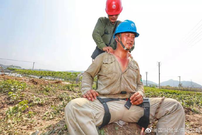 此次輕度中暑,經(jīng)過隊(duì)員朱瑞堯的緊急施治,楊亮攜徒弟繼續(xù)上桿安裝橫擔(dān)、緊線等作業(yè)。高溫下,連續(xù)作業(yè)長達(dá)10個(gè)小時(shí)。