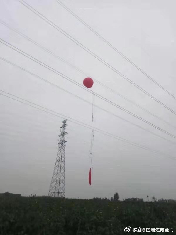 【深夜清除“空中來客”】8月19日19時(shí)15分,國網(wǎng)宿遷沭陽縣供電公司屬地護(hù)線員發(fā)現(xiàn)華沖鎮(zhèn)境內(nèi)的220千伏萬穆4E24線40號(hào)塔C相導(dǎo)線懸掛著氫氣球。通過逐級(jí)匯報(bào)、并將輸電線路由運(yùn)行轉(zhuǎn)為熱備用后,運(yùn)檢人員迅速帶上激光炮趕往現(xiàn)場。于21時(shí)22分,成功將氫氣球擊球,保障了輸電線路安全穩(wěn)定運(yùn)行。