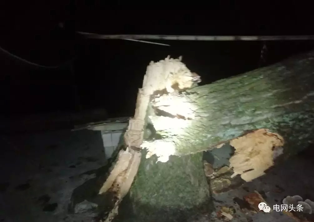 掛斷電話,供電公司的搶修人員立刻帶上工器具趕到現(xiàn)場(chǎng)。到了現(xiàn)場(chǎng)后,供電員工發(fā)現(xiàn),一棵要兩個(gè)人雙臂環(huán)繞才能抱住的白楊樹從根部斷裂倒在電線上,導(dǎo)致10千伏中坪線老虎巖支線的一基高壓電桿倒桿。