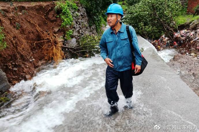 【蹚水揮汗只為安全用電】8月21日,國網(wǎng)淄博供電公司組織人員對域城鎮(zhèn)西北峪村的10千伏線路及設施進行巡視檢查。該村現(xiàn)有村內公路便是原來的河道,水深時漫過腰身,隨著水位降低變緩,供電人員立即進入村中進行用電安全檢查,確保供電線路設備安全運行。 ????