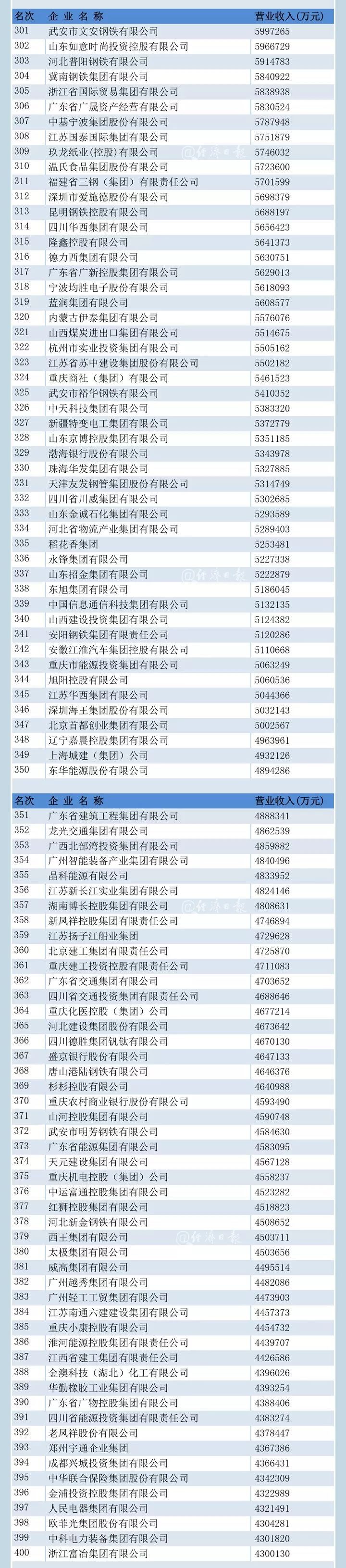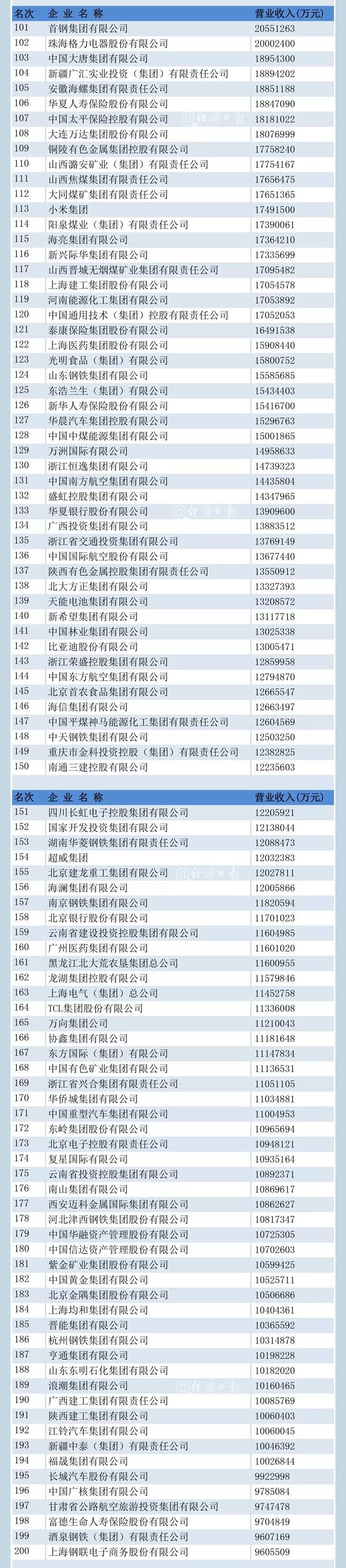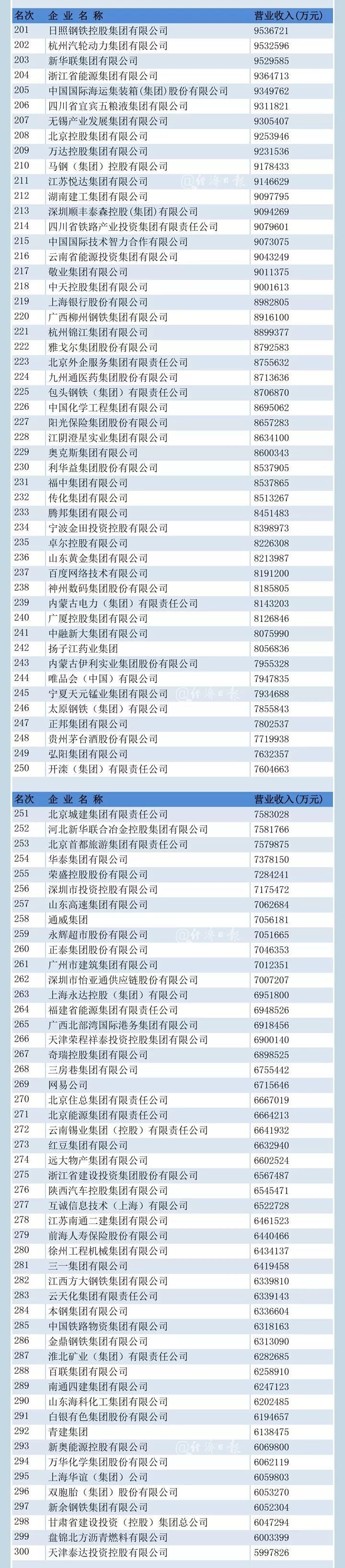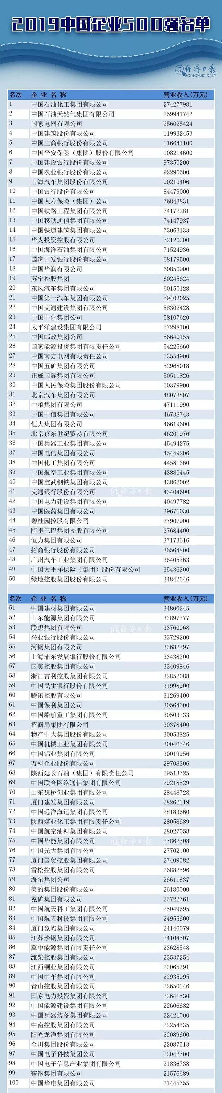 2019中國(guó)企業(yè)500強(qiáng)榜單