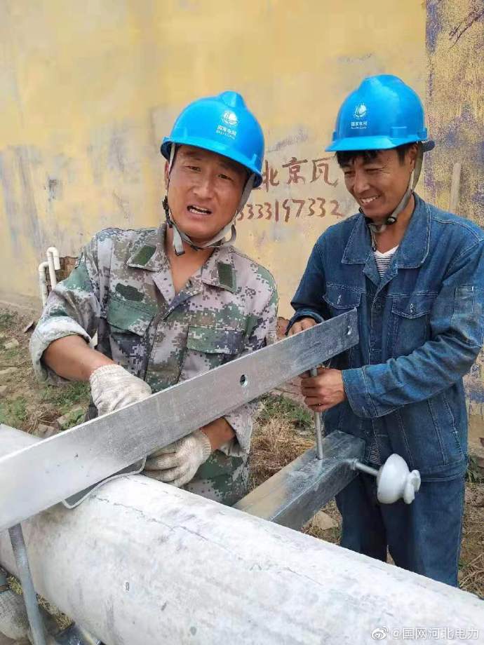 電力小哥跟我們打個(gè)招呼!看慣了桿上作業(yè),今天我們來(lái)揭秘桿下作業(yè)是什么樣子的……9月5日,國(guó)網(wǎng)廣宗縣供電公司在劉全寨村進(jìn)行線(xiàn)路改造。圖為該公司員工在安裝低壓橫擔(dān)。