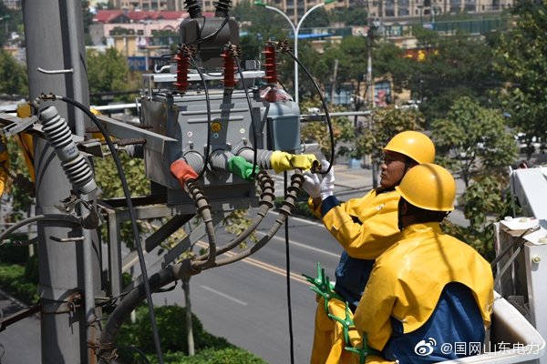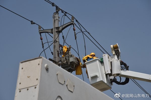 【高空作業(yè)除隱患 確??蛻舭踩秒姟?月8日,國網(wǎng)東平縣供電公司帶電作業(yè)人員在10千伏文秀線29號桿帶電作業(yè),消除設(shè)備缺陷。本次消缺是秋檢的一部分,也是為即將到來的國慶期間安全可靠供電做準(zhǔn)備,確保電網(wǎng)安全運行。