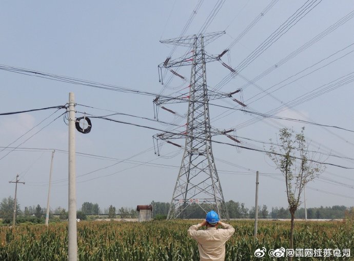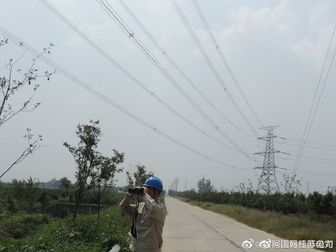 【開展保電特巡】9月9日,國網江蘇檢修公司徐州運維站輸電運檢班在500千伏艾姚、艾湖線開展保電特巡工作。烈日當空,班組人員不懼炎熱,對“三跨”區(qū)域、耐張桿塔展開重點巡視,為電網的安全運行保駕護航。 ????