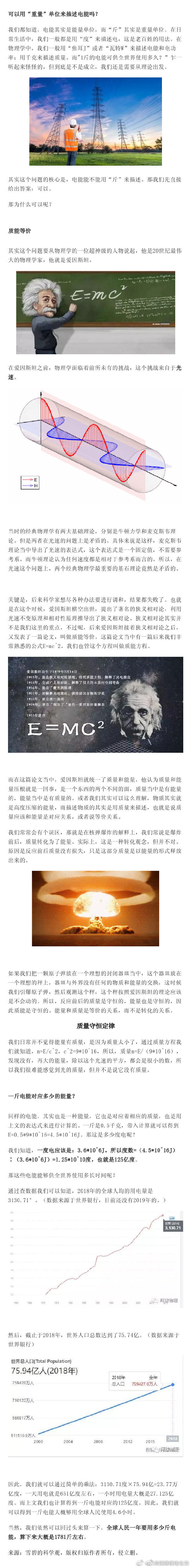 電能其實是能量單位,“斤”是重量單位。在日常生活中,我們一般都是用“度”來描述電,這是老百姓的用法。在物理學中,我們一般用“焦耳J”或者“瓦特W”來描述電能和電功率;用千克來描述質(zhì)量。而”1斤的電能可供全世界使用多久?” ????