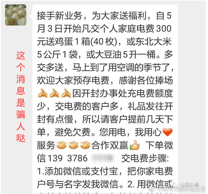 有個(gè)異地的小伙伴們說(shuō),最近收到了一則“好消息”:【交電費(fèi)送雞蛋、大米、大豆油……】這送福利力度不小呢?就來(lái)求證電蜜蜂啦,事實(shí)是:此活動(dòng)非供電公司組織,也未經(jīng)該公司授權(quán)!再次提醒客戶從正規(guī)渠道交電費(fèi),謹(jǐn)防詐騙!